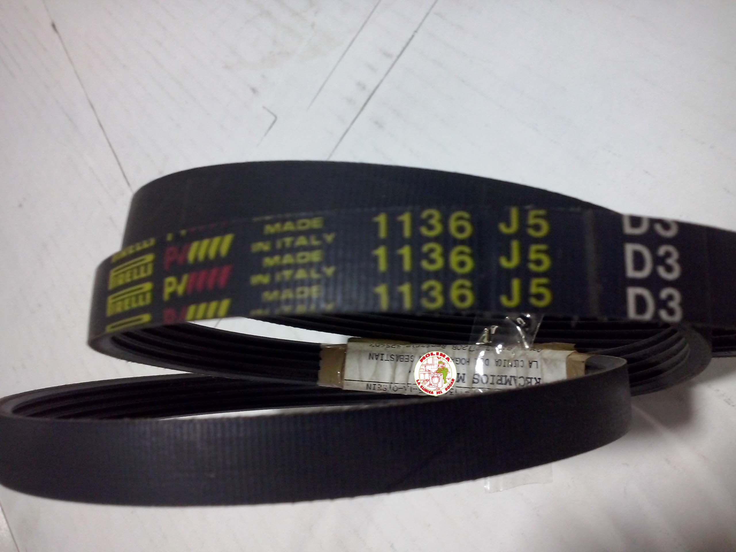 Correa estriada J-1136 Lavadora Otsein, Candy, Aeg, Ardo, Electrolux, Ignis, Newpol.Bauknecht, Whirlpool, Rommer, Zanussi, 1136J,