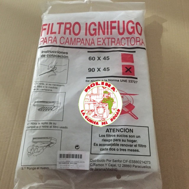 Filtro espuma campana extractora 90X45cm. standard.