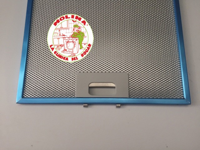 Filtro metálico campana extractora Pando 27,3×33,9 cm. 1 unidad, distancia sujeción 16,3, cierre 5,8 cm.