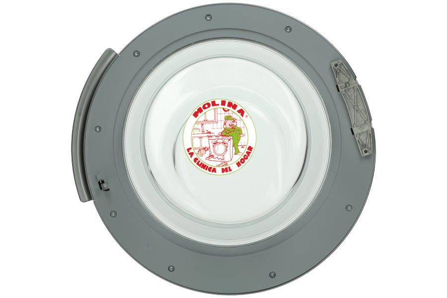 Referencia 015995Puerta escotilla lavadora, Bosch, Siemens, Neff, Balay, 8 kgs. plata.